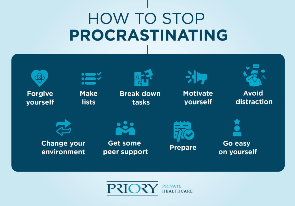 The number one rule to avoid procrastination is to forgive yourself for doing it till now or in the past and just be a little kind to yourself.